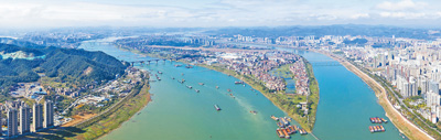 随着河长制、湖长制的全面建立,一条条江河、一个个湖泊有了专属守护者,水质持续改善,生态建设取得积极成效。图为广西壮族自治区梧州市西江黄金水道。 何华文摄(影像中国)