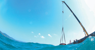 海南省三亚市亚龙湾相关海域,为修复珊瑚礁生态系统,人工生态礁被吊入海中。新华社记者 杨冠宇摄