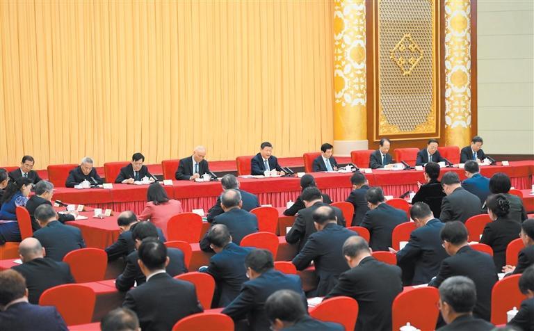 中共中央政治局常委、全国政协主席王沪宁,中共中央政治局常委、中央办公厅主任蔡奇参加看望和讨论。