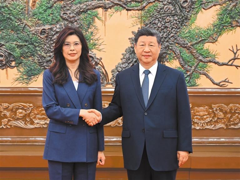 4月10日上午,中共中央总书记习近平在北京会见郑丽文主席率领的中国国民党访问团。新华社记者 谢环驰